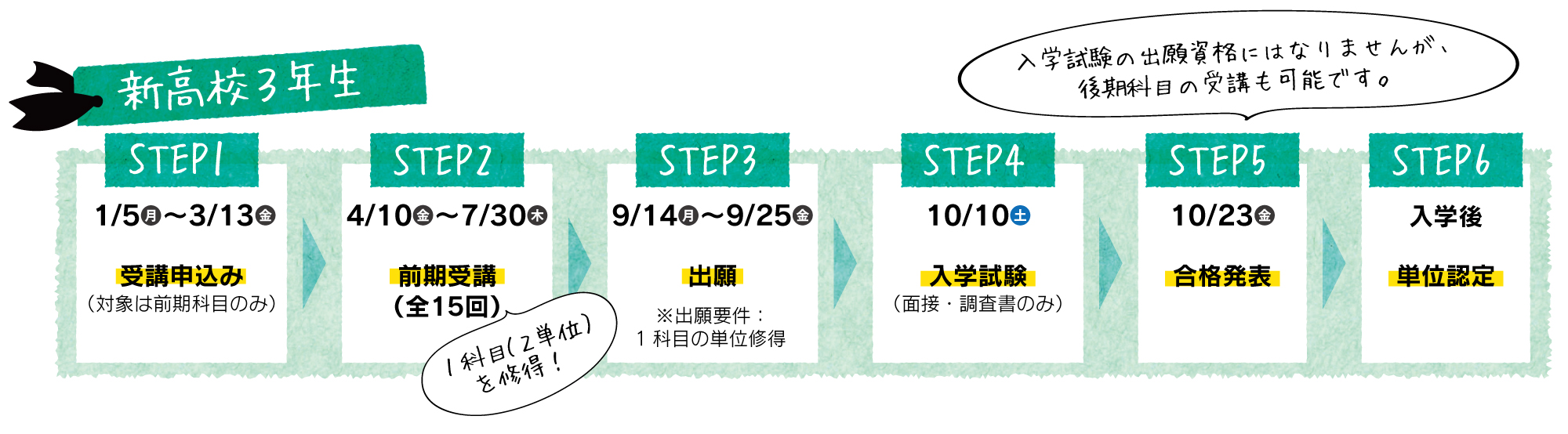 | 出願資格 | 高等学校を令和7年度卒業見込みの者 科目等履修生として1科目(2単位)以上を修得 |